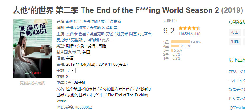 但是相比较《去他*的世界》来说,这部剧并没有更精彩。